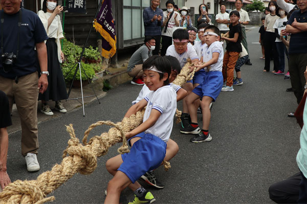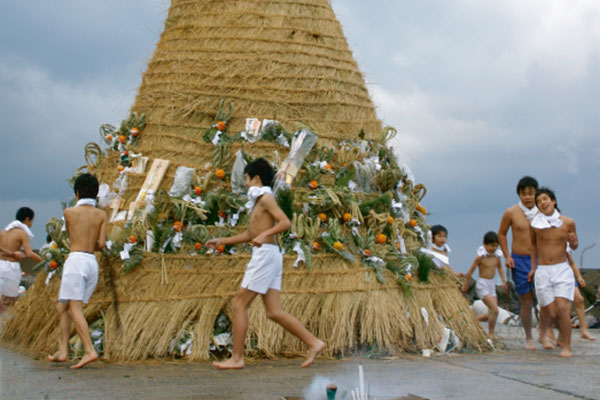 古町と新町の男子が、茅,菖蒲,蓬を縒りこんだ綱で、地面を激しく叩きながら家々を廻る。この後綱を結んで2つの町の境界で綱引き。そして浜で、綱で土俵を作り相撲をとる。綱を湊神社近くの松の根元に巻き付け行事は終了。我が国の綱引きの行事の本質・由来を知る上で極めて重要な行事。